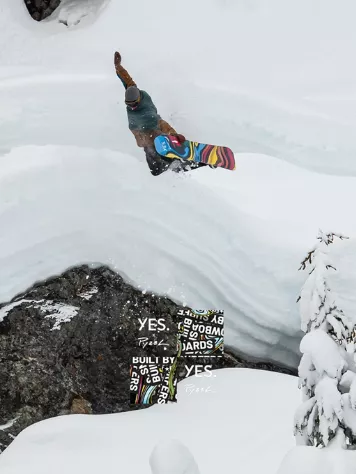 The guys from YES have teamed up with their good friends from PYZEL Surfboards to create a true all-mountain performance board. The board has an additional set of setback inserts to mount the bindings a little further back when the perfect powder day is coming up. However, its twin construction also makes it a real freestyle board when you’re out in the park. Additional info: the SBBS stands for snowboards built by surfers.
